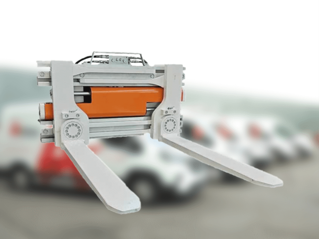 These forklift attachments combine clamping, rotating, and fork spreading in one unit. They can be fitted with different slip-on arms for specific tasks and are ideal for industries like recycling, manufacturing, food, and logistics.